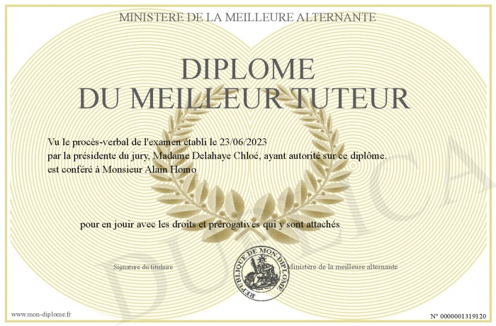 Envoyez par email votre Diplôme du meilleur tuteur personalisé