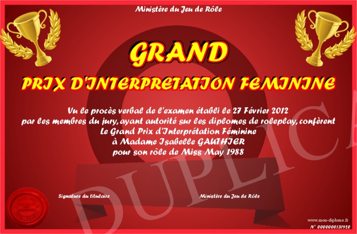Envoyez par email votre GRAND PRIX D'INTERPRETATION FEMININE personalisé