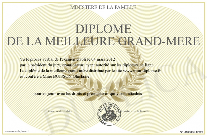 Envoyez par email votre Diplôme de la meilleure grand-mère personalisé