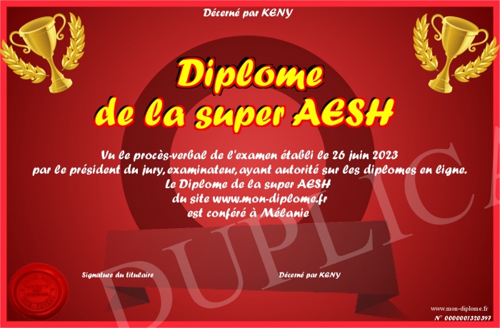 Envoyez par email votre Diplôme de la super AESH personalisé