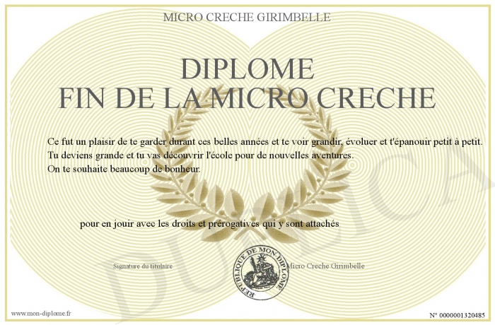 Envoyez par email votre Diplôme fin de la micro creche personalisé