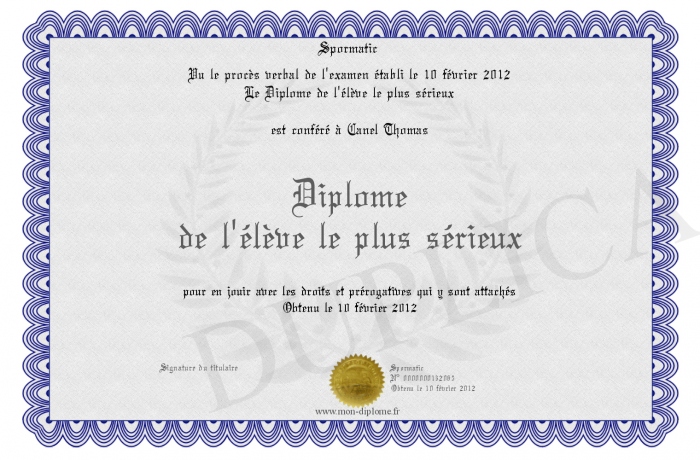 Envoyez par email votre Diplôme de l'élève le plus sérieux personalisé