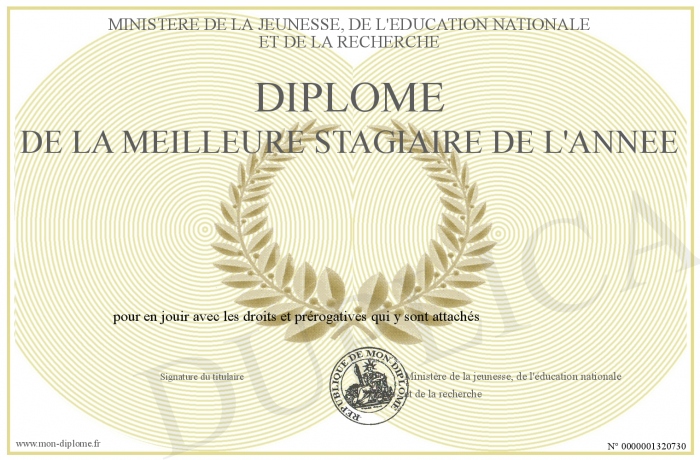 Envoyez par email votre Diplôme de la meilleure stagiaire de l'année personalisé
