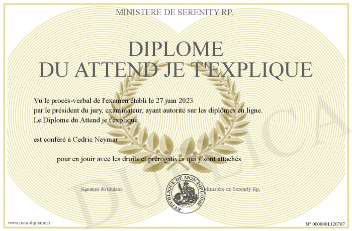 Envoyez par email votre Diplôme du Attend je t'explique personalisé