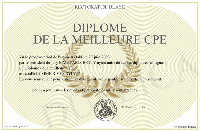Envoyez par email votre Diplôme de la meilleure CPE personalisé