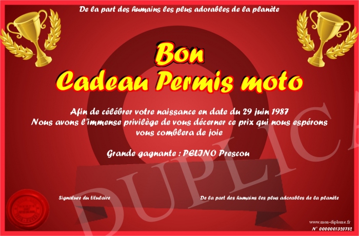 Envoyez par email votre Bon Cadeau Permis moto personalisé