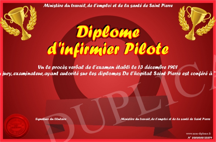 Envoyez par email votre Diplome d'infirmier Pilote personalisé