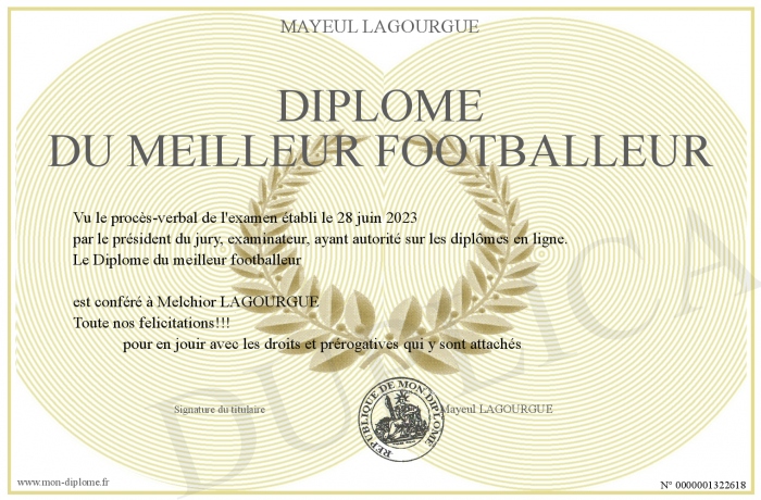 Envoyez par email votre Diplôme du meilleur footballeur personalisé