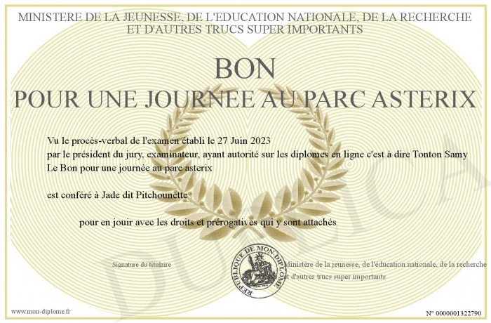 Envoyez par email votre Bon pour une journée au parc asterix personalisé