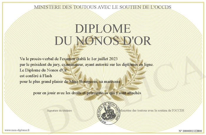 Envoyez par email votre Diplôme du Nonos d'Or personalisé