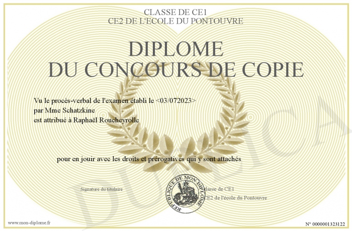 Envoyez par email votre Diplôme du Concours de copie personalisé