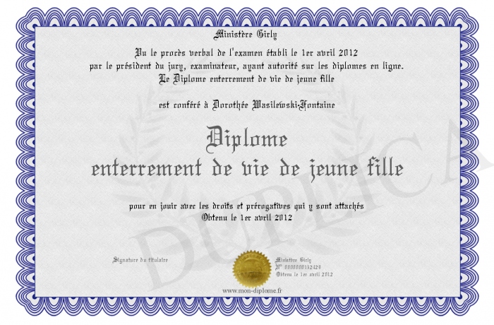 Envoyez par email votre Diplome enterrement de vie de jeune fille personalisé