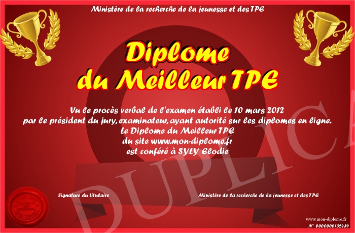 Envoyez par email votre Diplôme du Meilleur TPE personalisé