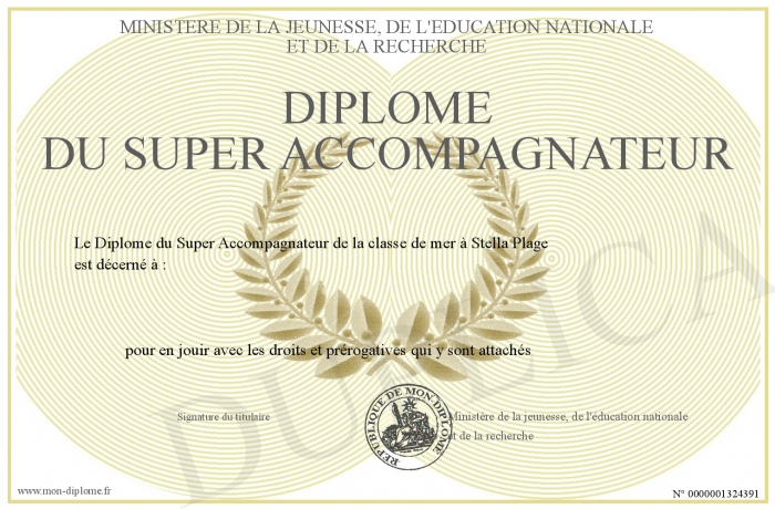 Envoyez par email votre Diplôme du Super Accompagnateur personalisé