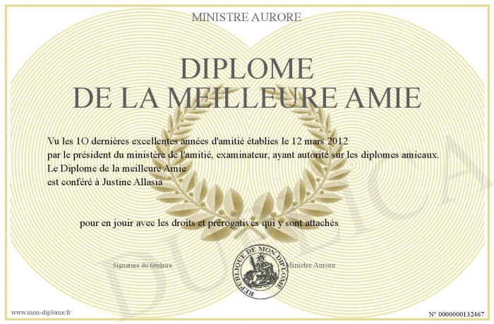 Envoyez par email votre Diplôme de la meilleure Amie personalisé