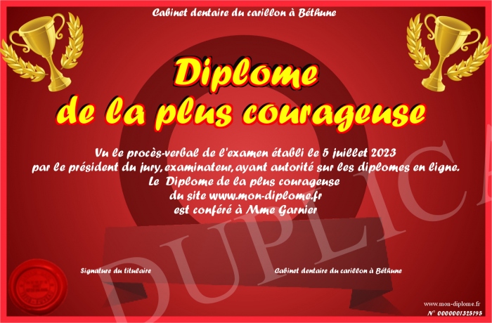 Envoyez par email votre Diplôme de la plus courageuse personalisé