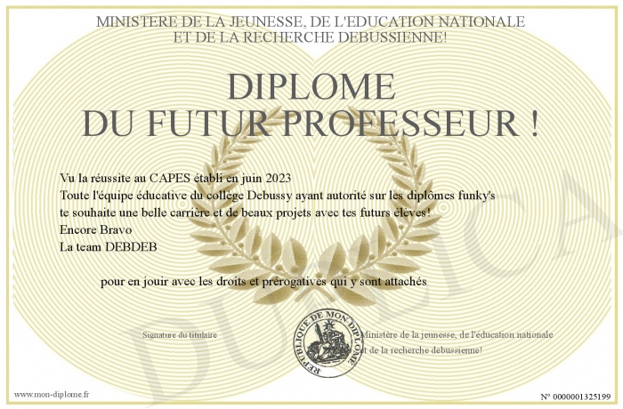 Envoyez par email votre Diplôme du futur professeur ! personalisé