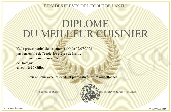 Envoyez par email votre Diplôme du meilleur cuisinier personalisé