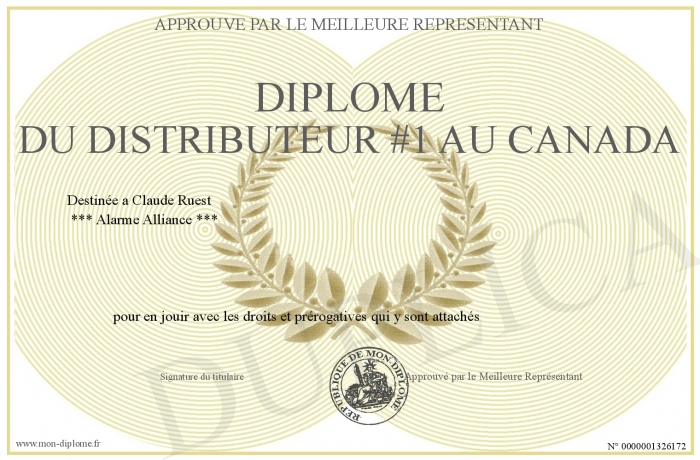Envoyez par email votre Diplôme du Distributeur #1 au Canada personalisé