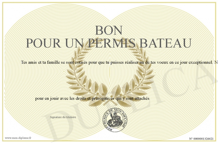 Envoyez par email votre Bon pour un permis bateau personalisé