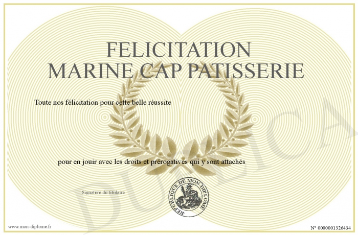 Envoyez par email votre Félicitation Marine CAP PATISSERIE personalisé