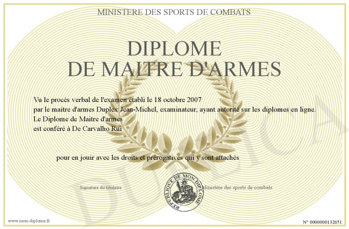 Envoyez par email votre Diplôme de Maitre d'armes personalisé