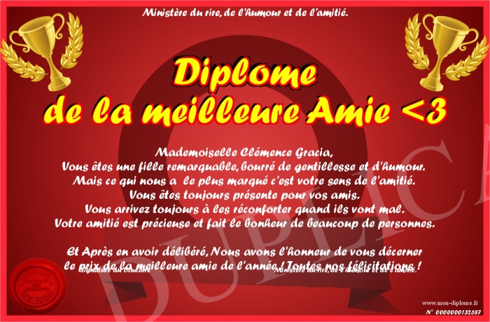 Envoyez par email votre Diplôme de la meilleure Amie -3 personalisé