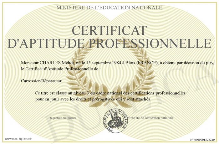 Envoyez par email votre Certificat d'Aptitude Professionnelle personalisé