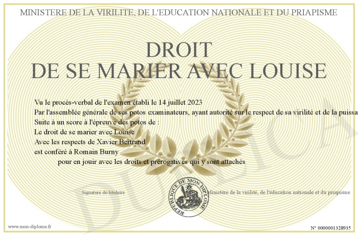 Envoyez par email votre droit de se marier avec Louise personalisé