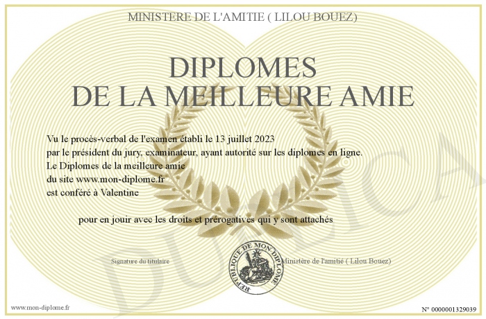 Envoyez par email votre Diplômes de la meilleure amie personalisé