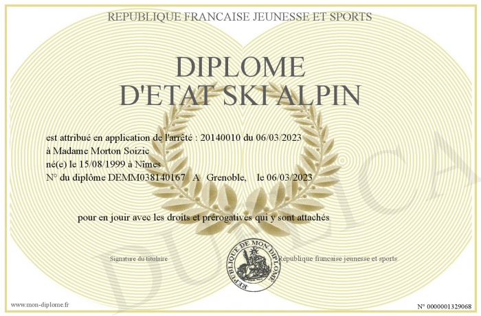 Envoyez par email votre Diplôme d'état ski alpin personalisé