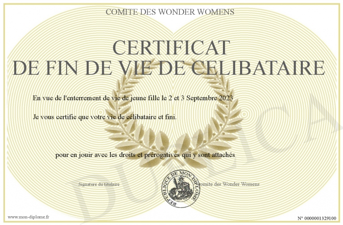 Envoyez par email votre certificat de fin de vie de célibataire personalisé