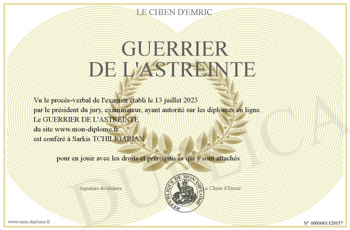 Envoyez par email votre GUERRIER DE L'ASTREINTE personalisé