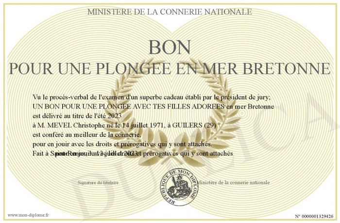 Envoyez par email votre Bon pour une plongée en mer bretonne personalisé