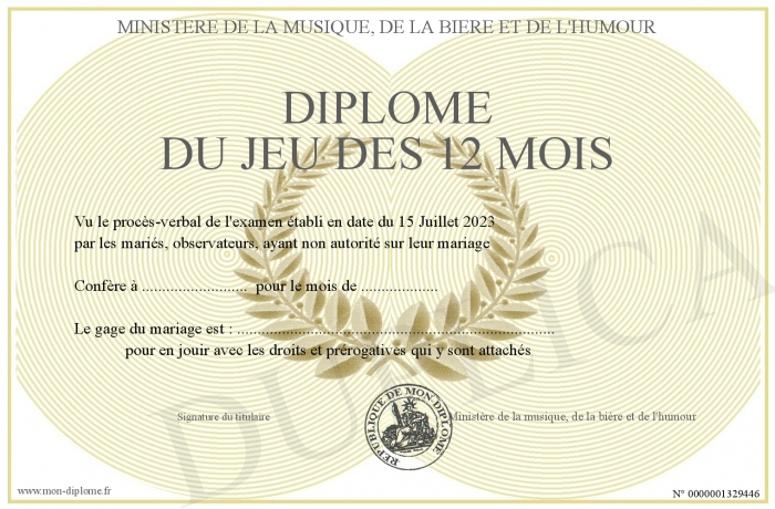 Envoyez par email votre Diplôme du jeu des 12 mois personalisé