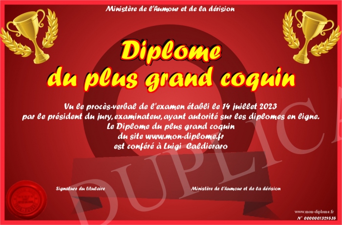 Envoyez par email votre Diplôme du plus grand coquin personalisé