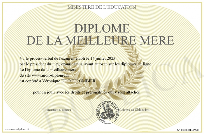 Envoyez par email votre Diplôme de la meilleure mère personalisé