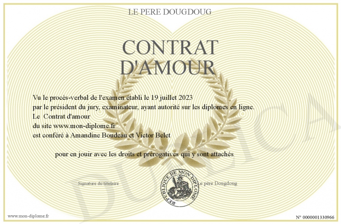 Envoyez par email votre Contrat d'amour personalisé