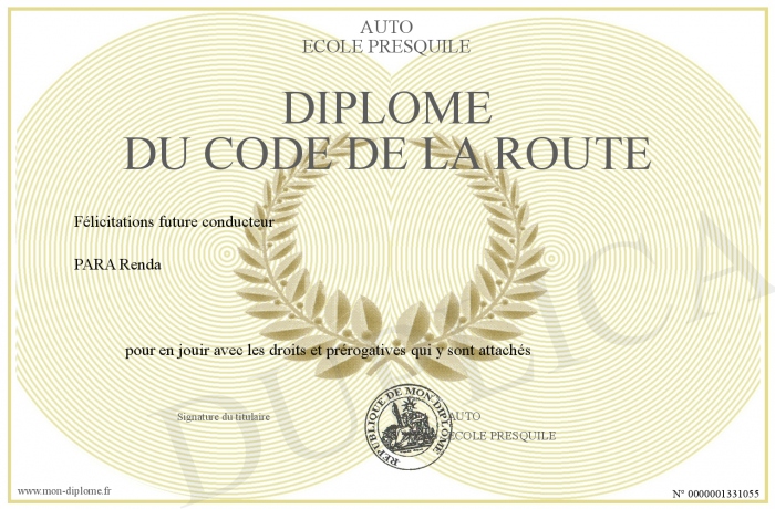 envoyé par le AUTO-ECOLE PRESQUILE !