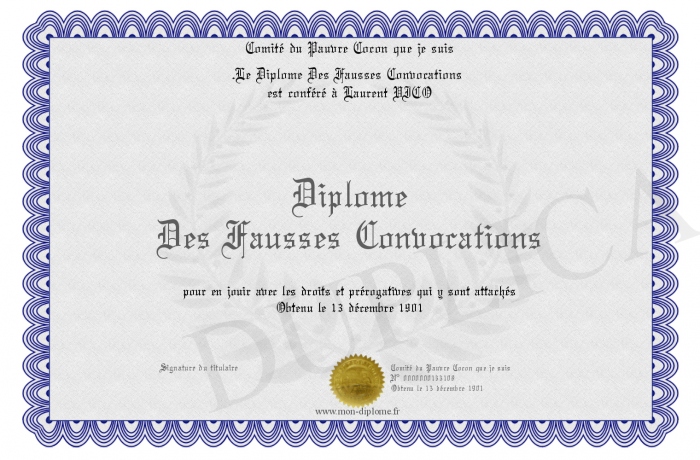 Envoyez par email votre Diplôme Des Fausses Convocations personalisé