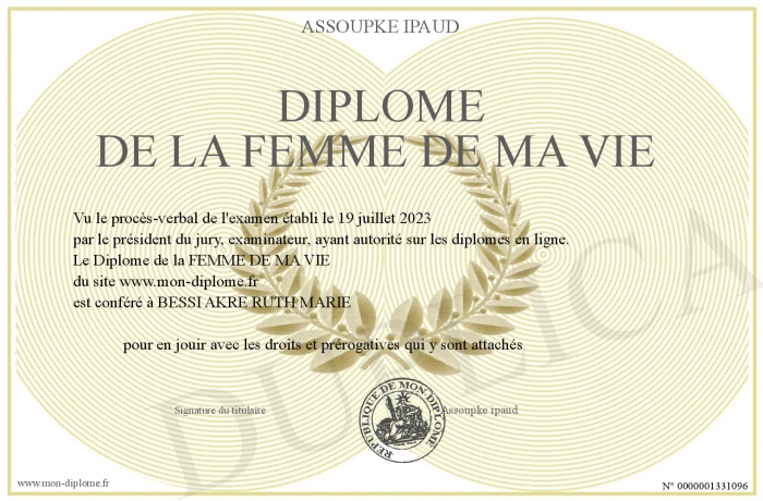 Envoyez par email votre Diplôme de la FEMME DE MA VIE personalisé