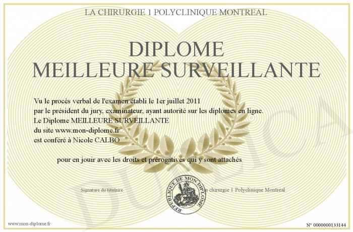 Envoyez par email votre Diplome MEILLEURE SURVEILLANTE personalisé