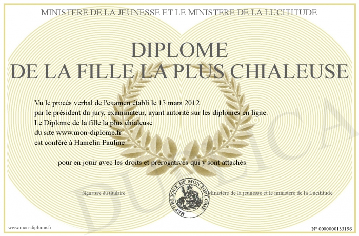 Envoyez par email votre Diplôme de la fille la plus chialeuse personalisé