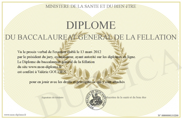 Envoyez par email votre Diplôme du baccalaureat général de la féllation personalisé