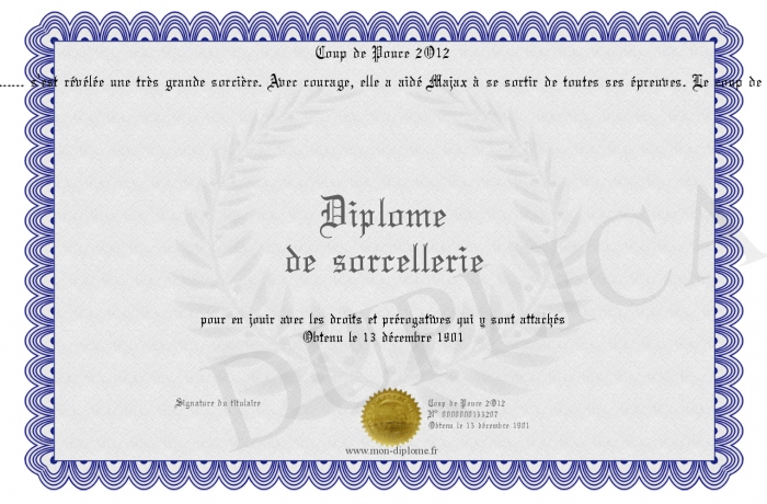 Envoyez par email votre Diplôme de sorcellerie personalisé