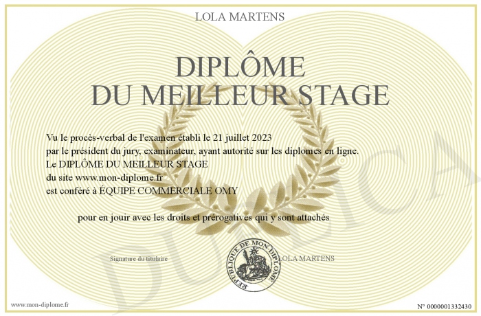 Envoyez par email votre DIPLÔME DU MEILLEUR STAGE personalisé
