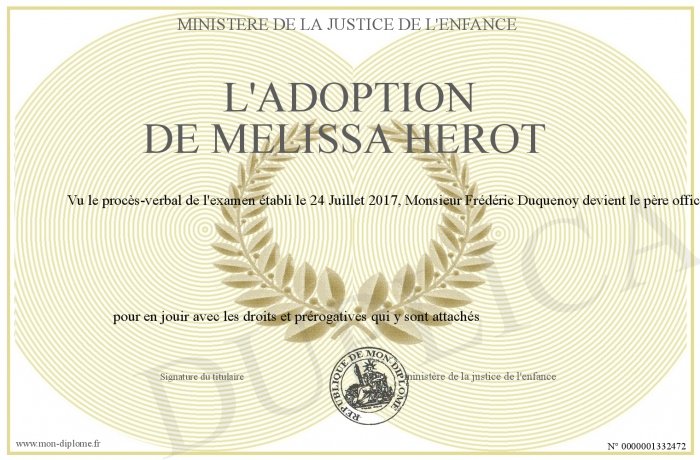Envoyez par email votre l'adoption de Mélissa Herot personalisé