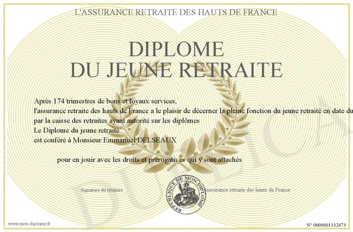 Envoyez par email votre Diplôme du jeune retraité personalisé