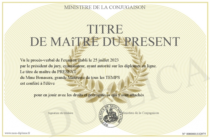 Envoyez par email votre titre de maître du PRESENT personalisé