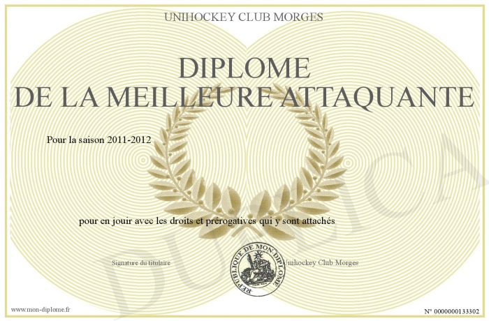 Envoyez par email votre Diplôme de la meilleure attaquante personalisé